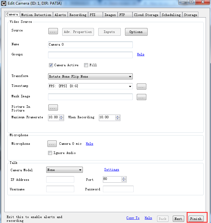 Schritt 7: Es erscheint ein Fenster, das ermöglicht, die Kamera zu bearbeiten. Sie können einfach auf Fertig klicken.
