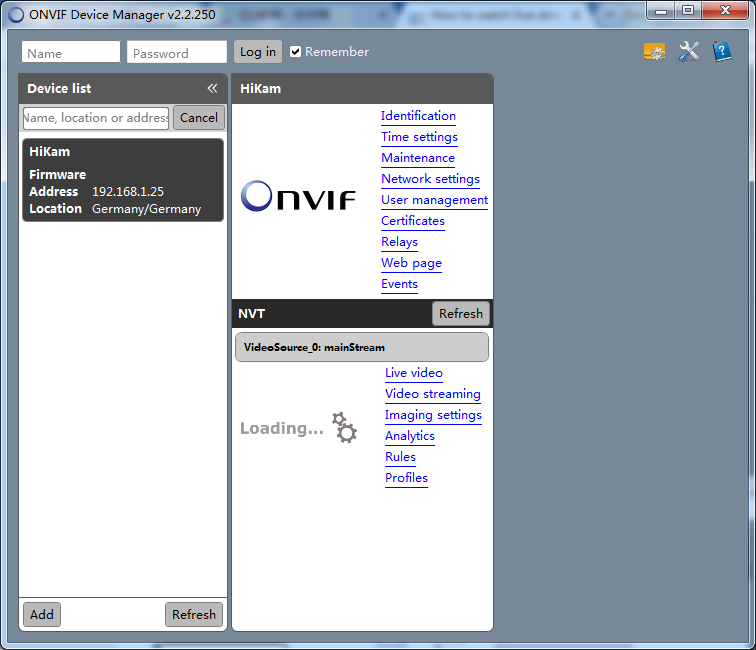 Anmerkung 1: Jedes Mal, wenn ONVIF Device Manager gestartet wird, sucht die Software automatisch im lokalen Netzwerk nach Kameras und baut auch die Verbindung zu den manuell hinzugefügten Kameras auf.