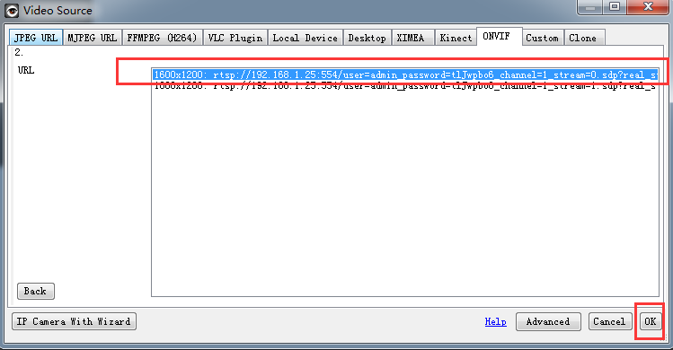 In Schritt 2, tragen Sie die RTSP URL rtsp://wan_ip:10024/onvif1 ein.